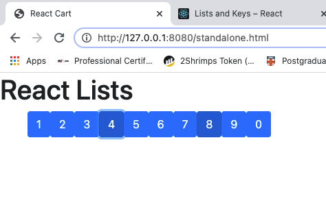bootstrap react styled buttons of 1 to 9 and 0. Recording clicked numbers in an array. useful as on onscreen number pad